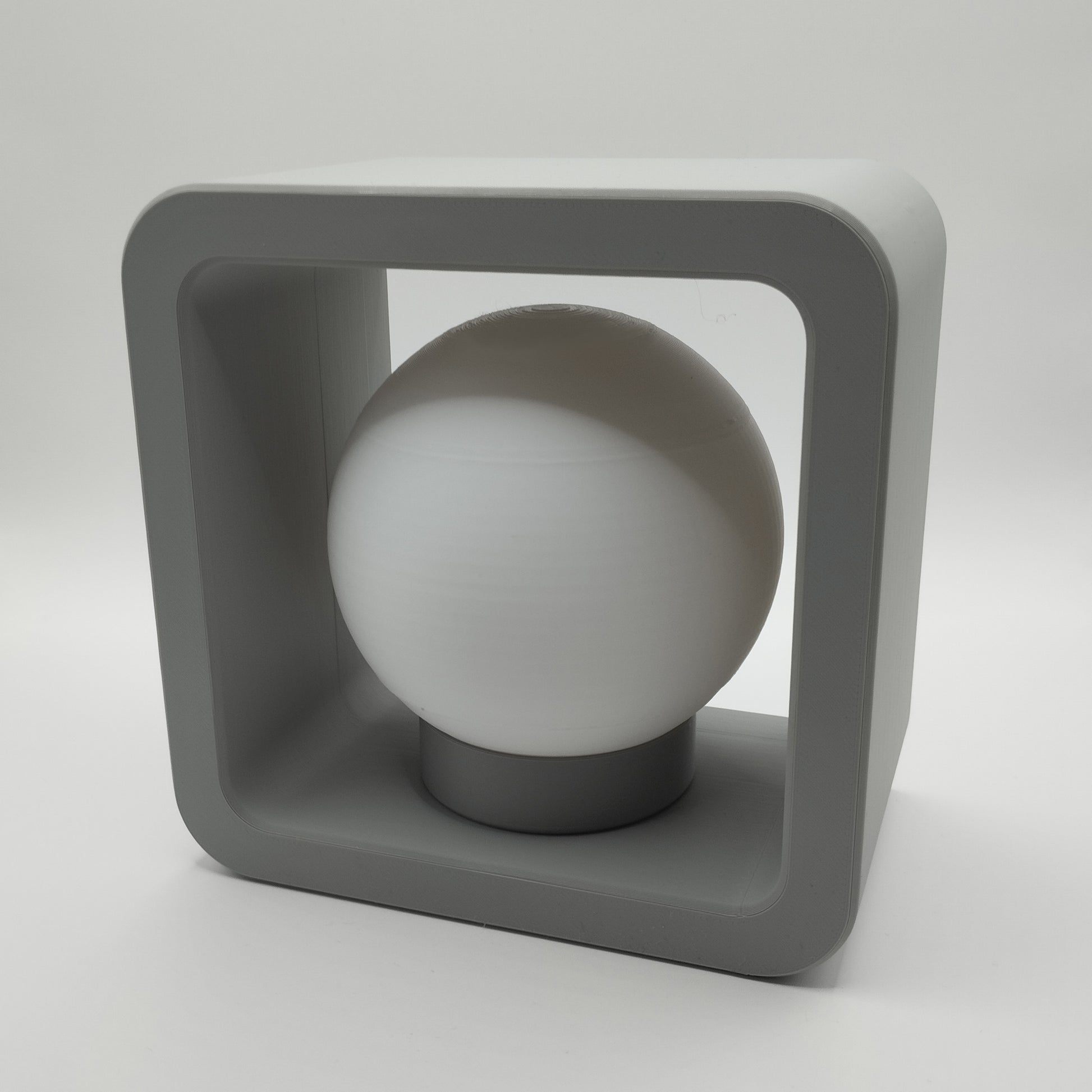 Elevate your lighting with this sleek, 3D printed Modern Cube Glow Lamp, where minimalist design meets functional ambiance. Housed in a geometric square frame, a smooth, glowing orb floats within, offering a sculptural statement by day and a gentle, inviting light by night.