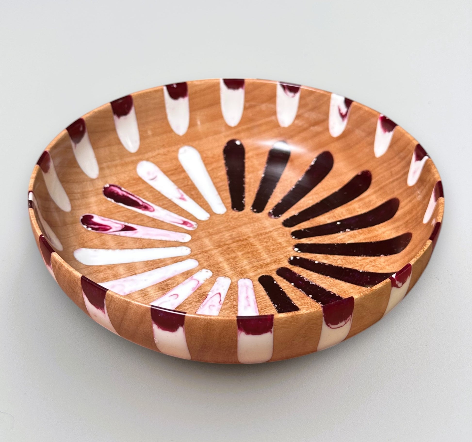 Wooden Maple Bowl with Red & White Resin Geo Patern